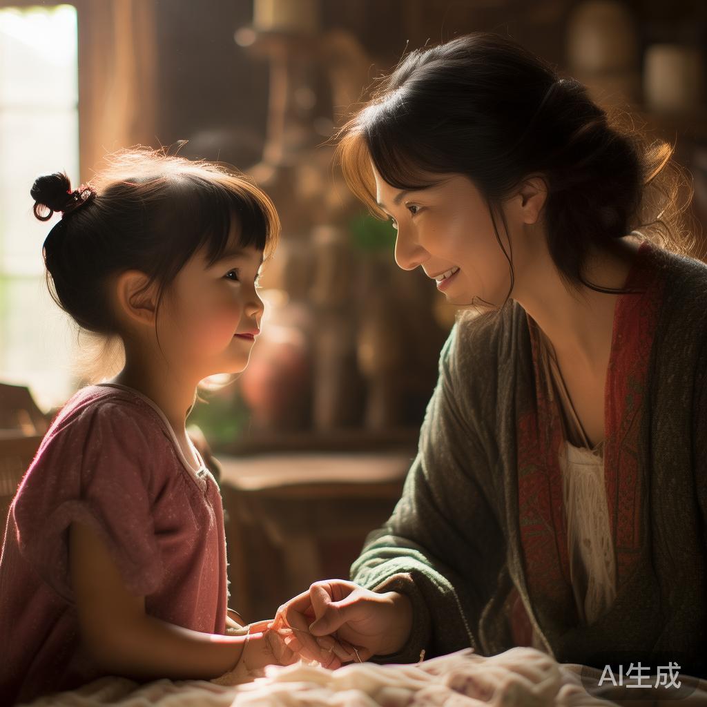 刘氏放下刚缝好的衣裳,企图站起来,却又被何珍抓住。刘氏微微弯腰,将小何珍抱起,在她粉嫩的脸颊上温柔亲吻。何珍吱吱嘎嘎地笑着,像初绽的牡丹。