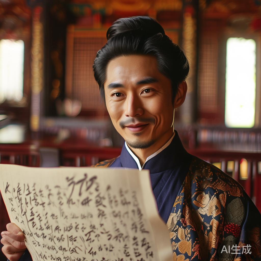 曹州知府将字捧在手中,细细品味,连声称赞。他抬头见到何珠,又看了看手中的字,禁不住笑起来,心中暗忖:原来皇帝看中的是何玉章的女儿,打算选她入宫!他庆幸自己机灵,不失升迁发财的机会。但实际上,皇帝并没有选妃的意思,仅仅是在夸赞那朵奇丽的牡丹而已。然而,曹州知府却误解成皇帝要选他的“贵妃”,迫不及待地准备亲自护送“娘娘”进京。