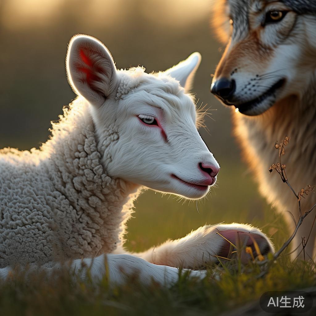 起初,小羊十分害怕,总是防备着狼,就连睡觉也是睁一只眼闭一只眼。然而时间久了,小羊逐渐放下了戒心,反而对狼产生了一些好感,并开始质疑长辈们的旧看法。